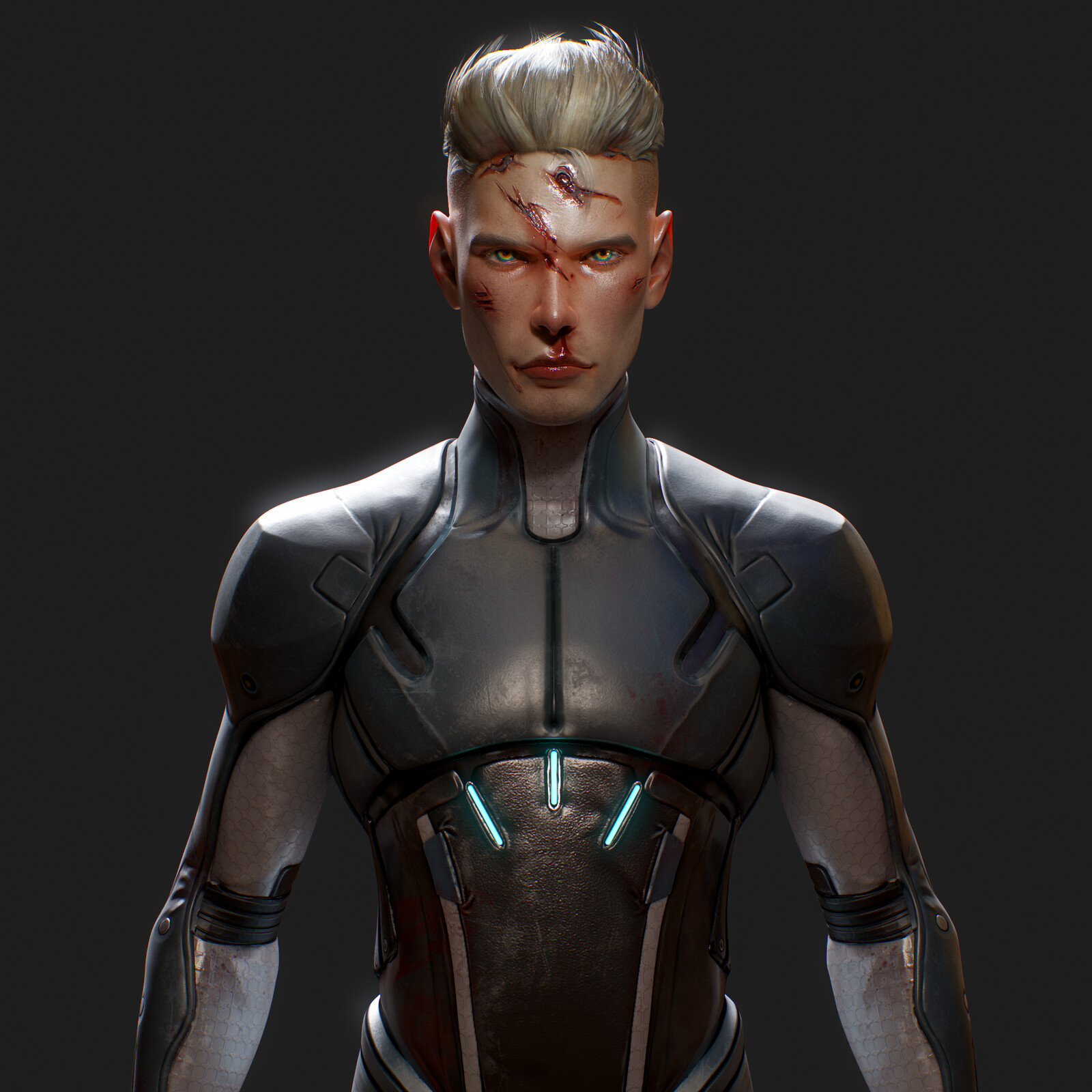 Realtime character created for Damon Woods' "Character Creation for Games" 10 week Gnomon class! Head sculpt inspired by the lovely work of Gerry Arthur: https://www.artstation.com/artwork/g8DOL and the under armor suit is based off a Mass Effect: Andromeda concept: https://www.artstation.com/artwork/65R40