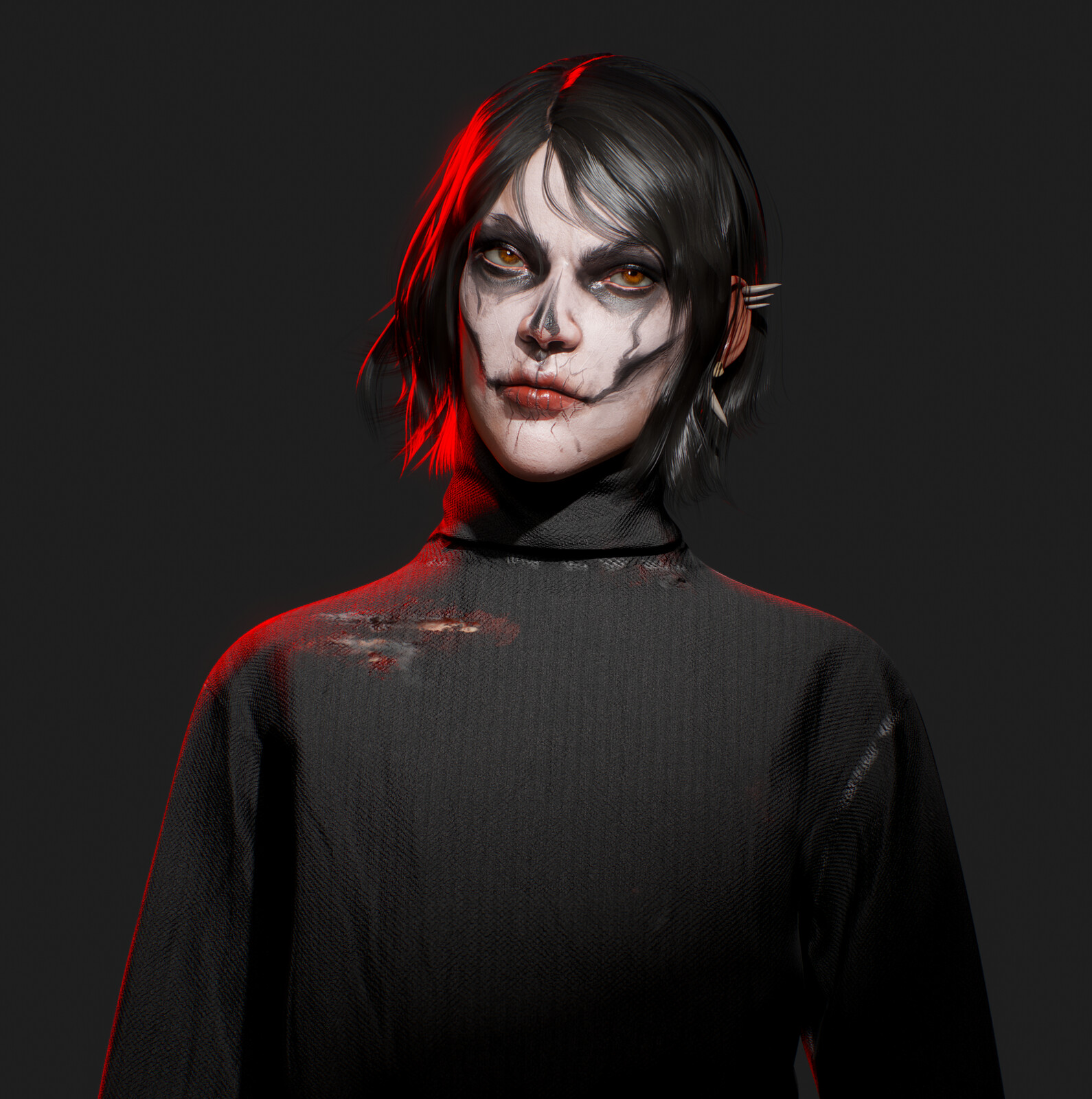 A rendition of the necromancer Harrowhark Nonagesimus, otherwise known as "evil stick", from the Locked Tomb series. Started as a little challenge between coworkers outside of work, decided to take it a little further and polish it up a bit more! Took about 3 weeks and a handful of days to get together. Face paint very much inspired by the artwork of Ash and her many Harrowhark fan art pieces, be sure to follow her if your a fan of the series! https://twitter.com/BS_artsss/status/1189796906156691457?s=20